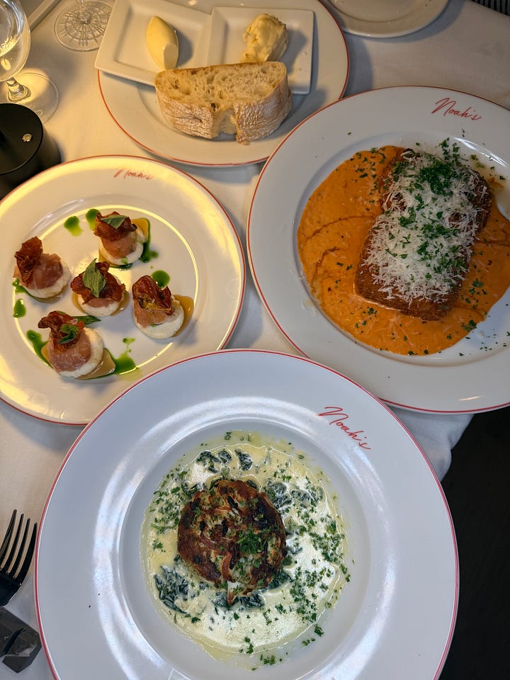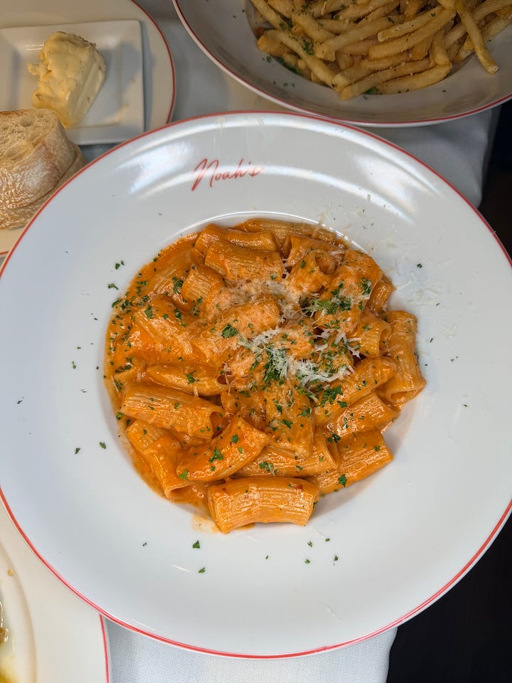 Kristen was there for the friends and family soft opening on Saturday, and indulged in the prosciutto e melon salad, crab cake rockefeller, eggplant piccata, truffle fries, and milk and cookies. And, oh yeah, the mezzi rigatoni, which is also made with Saucy’s Vodka Sauce. “I told Noah no one does good vodka sauce around here and that he needs to do it justice,” Kristen says.