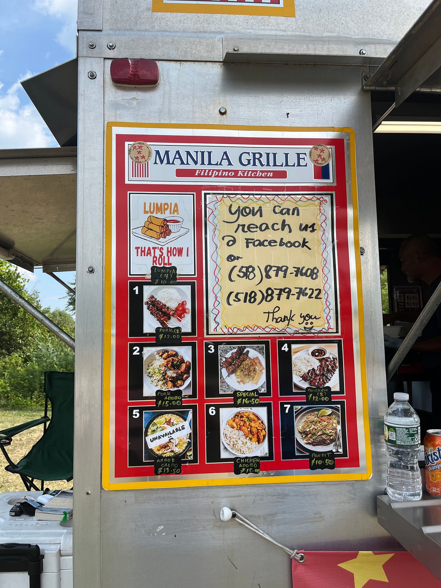 Open on weekends through the fall, Manila Grille is a family business run by Philippines natives Romeo and Teresita Soriano and their American-born children. When Troy was little, Romeo ran a restaurant in Albany called, according to the elder Soriano, “Romeo’s Tavern…and Grill and Restaurant.”