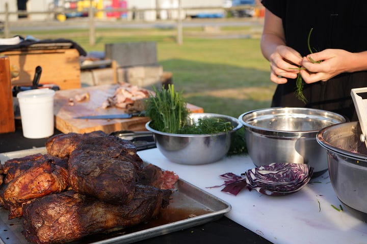 Fast-forward a few years, and Pitney Meadows is gearing up to take their wedding operations up a notch. Thanks to a brand-new exclusive partnership with Farmstead Catering (with whom the community farm partnered to present this year’s Fire Feast), Pitney Meadows is now offering “seed-to-celebration” weddings and gatherings—think baby showers, engagement parties, corporate gatherings, and galas—beginning in 2026.