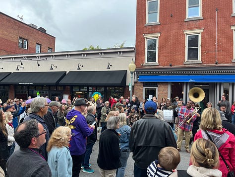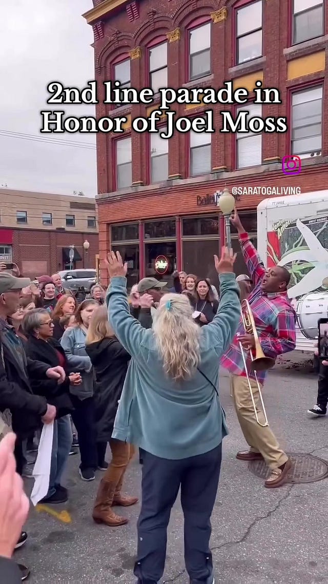 There’s no possible way to fully capture the essence of a life—let alone a life as illustrious as Joel Moss’—in a single evening. But Tuesday night’s tribute to the late Saratogian—which was complete with a second line parade from Congress Park to the producer’s beloved Caffè Lena as well as a full slate of readings and performances in his honor—got pretty darn close.