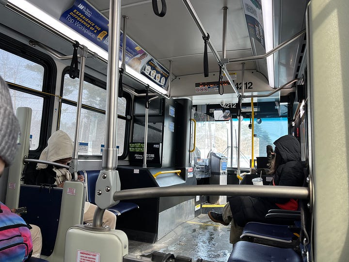 On the morning of, after a trip to the Y (which was completely packed with Saratogians getting in a pre-chowder workout), Pete and I left our house for the bus stop with hand warmers packed into our pockets. After narrowly avoiding being sprayed by a passing snowplow and getting windburn in the five minutes we were outside, our plans started to go awry.